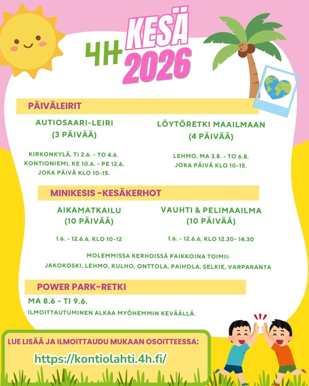 4H-Kesätyöpaikat ovat nyt haettavissa 31.3.2025 klo 23:59 asti. Tutustu paikkoihin ja laita hakemuslomake ajoissa. Lisätietoja ja hakulomake: